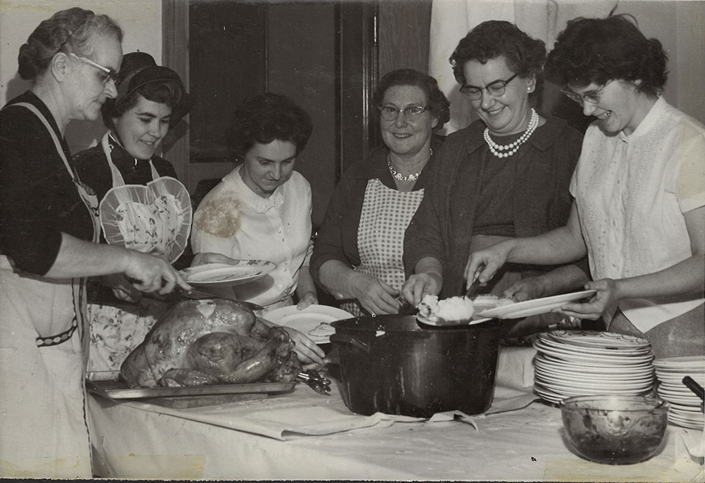 Homeless dinner - festive holiday supper served to 145 homeless men in 1964